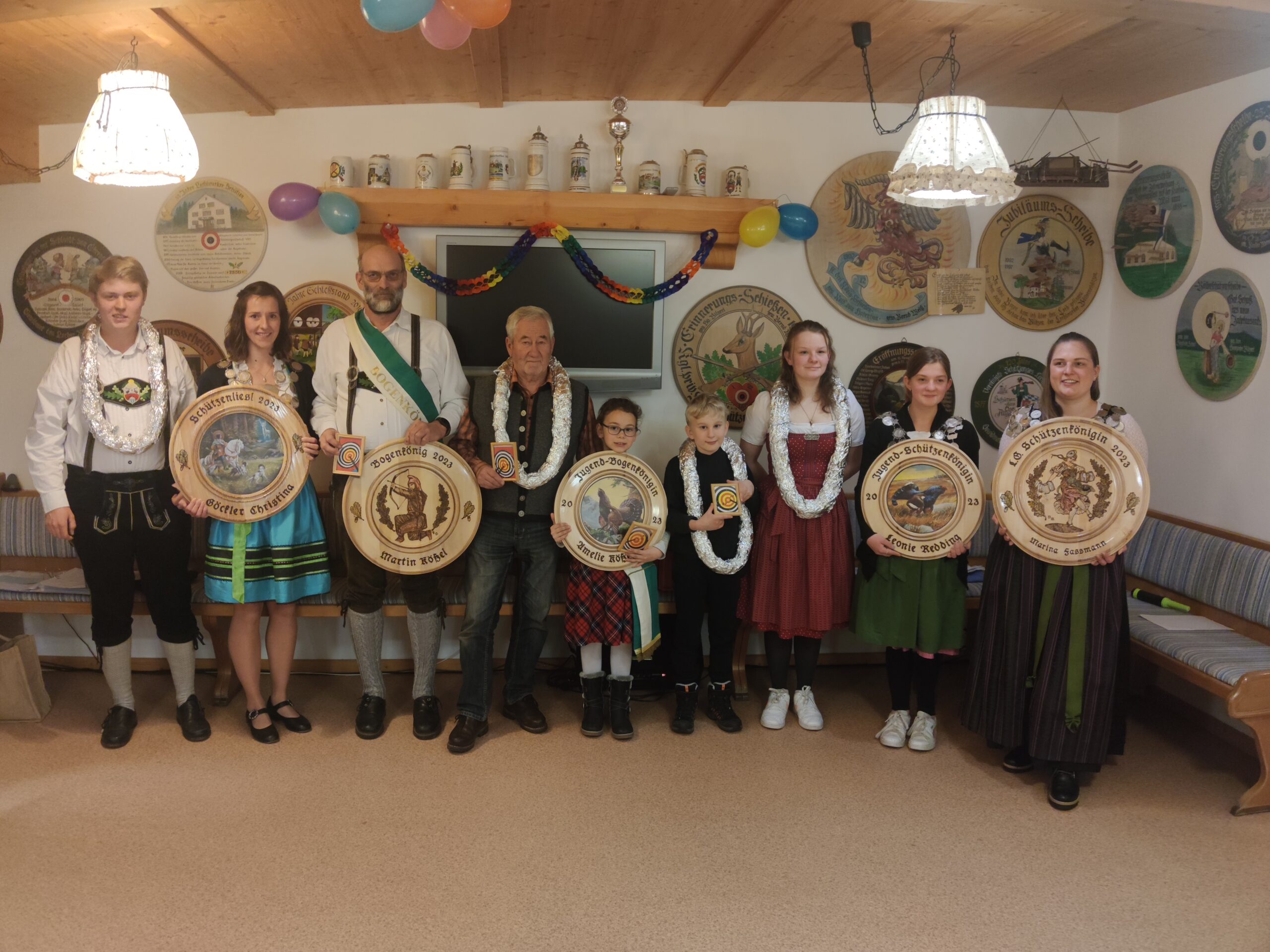 Ein Familienduell gab es bei den Bogenschützen. Bogenkönig ist Martin Kößel , Bogenjugendkönigin ist seine Enkelin Amelie Kößel. Vizekönig ist Rainhard Prokop und Vize Jugendkönig Jonas Wenzel. Musikalisch umrahmt wurde das Ganze vom Duo Ungelert, die auf der Steirischen ihr Können zum Besten gaben. Gefeiert wurden die Könige bis spät in die Nacht.